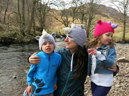 Charge into the outdoors in this seamless circular rhino hat. The pattern is worked from the bottom up and includes a choice of four sizes to fit both young and old alike. Instructions are included for knitting the hat with or without a mask. So fun they can be worn every day or as part of a costume. Not into rhinos? Get creative with the colors for a horned monster hat.