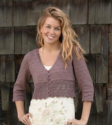 A textured cardigan perfect for spring with a lace panel added worked separately.