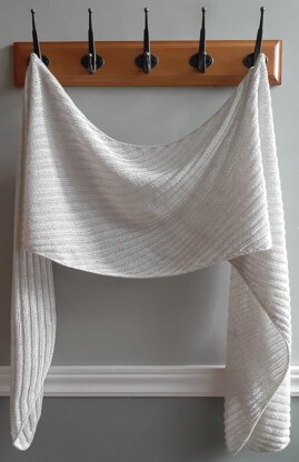 This wrap begins at the bottom left corner, increasing at both edges until the full width is achieved. Then a decrease is worked at one edge while an increase is worked at the other to continue the bias shaping. When the desired length is achieved, decreases are worked at both edges until just a few stitches remain.