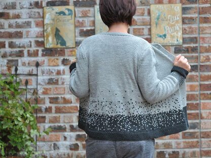 Charlotte is a classic cardigan with a relatively simple cut. Its eye-catching confetti pattern is distinctive. It can be either knitted by using the Fair Isle technique or subsequently embroidered by using the duplicate stitch. I used a combinationi of both techniques. But of course, you may replace the pattern by your own preferences (e. g. stripes). Charlotte is worked in single parts from bottom to top.