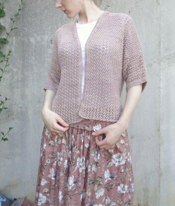 This lovely cardigan shrug has a beautiful all-over lace design, great for throwing on over a tank or dress in the Summer, or a long sleeve shirt in cooler weather. I designed this sweater to be a relaxed throw-on piece, comfortable to wear and easy to layer.