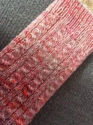 This pattern contains a simple faux cable pattern for the main body of the sock, a short row heel in garter stitch and a rounded toe for comfort. The pattern comes in three standard sizes: