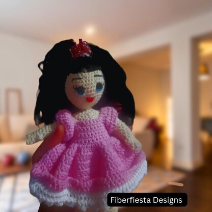 A crochet doll pattern include eyes embroidery, lips embroidery, hairs making , dress pattern. It is 8 inches long. This is no sew pattern Yarn total needed: