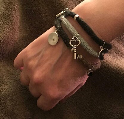 An easy make it in one day kind of gift or small indulgence for yourself. These wrap bracelets are popular and easy to wear. Add whatever charms you like. I used silver beads to separate the charms and added a cute magnetic clasp. Full description of the charms used is included in the pattern. It can easily be made shorter or longer for more wraps or larger/smaller wrist size.