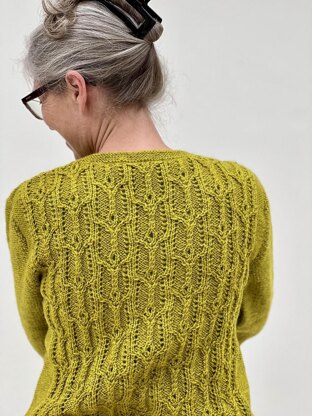 Inspired by rows of flower bulbs growing in a field, the Chatto Sweater has wonderful texture. As the bulbs begin to grow, the leaves spread out over planted ridges and a central flower head emerges. The ridges are knitted with long lines of single eyelets and flower heads are formed using a double eyelet and twisted stitch combination. The pattern is worked on a reverse stocking stitch background and the set-in sleeves have a single flower motif at the cuff.
