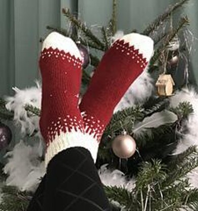 Les chaussettes Merry Christmas sont les premières chaussettes de la trilogie de noël. Elles se tricotent de la cheville à la pointe, avec un joli motif jacquard sur la cheville et la pointe représentant la neige qui tombe. Pour personnaliser au maximum vos chaussettes, je vous propose 3 versions de talon, soit en rangs raccourcis (talon 1), soit à bandes en mailles glissées (talon 2), soit à mailles glissées « œil de perdrix » (talon 3). Le modèle présenté est réalisé avec la laine Arwetta Classique de chez Filcolana disponible chez Triscote en coloris Blanc Cassé et Rouge et le talon n°2.