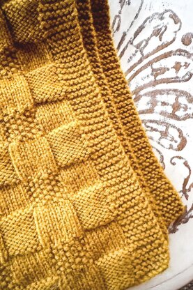 A lisaFdesign classic textured knit and purl blanket with garter stitch edges. This timeless blanket pattern is created from Burnt Hill Vespers Merino 8ply, making it a perfect gift for baby in any season.