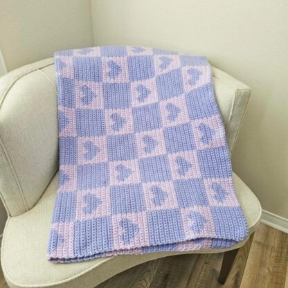 The Checkered Hearts Crochet Throw Blanket Pattern is the perfect accessory for your retro, rainbow style!