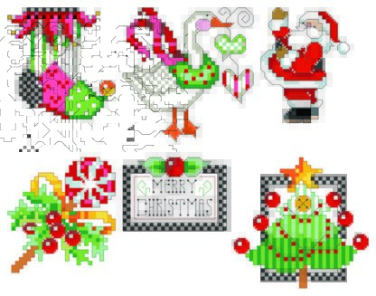 - Each ornament approximently 35 stitches wide by 35 stitches high. If stitched in 14 count they would messure 2.5" wide by 2.5" high.