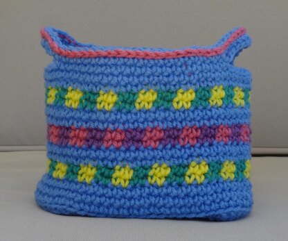 This pattern has detailed instructions and photos for making this colorful checkered striped basket. The checkered pattern utilizes the tapestry method of crochet, sometimes called intarsia. This color work method creates an almost reversible fabric and is perfect for a project, such as this basket, where the work will be able to be seen on both sides.