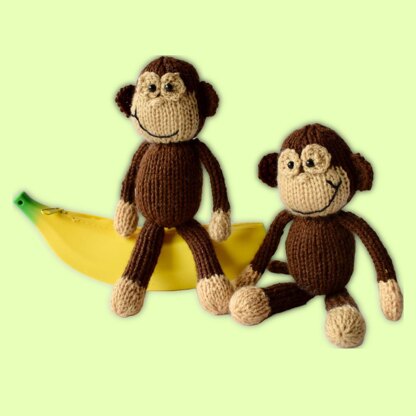 The Cheeky Monkeys are making mischief! These little toys are quick to knit stash- busters. Both monkeys follow the same pattern, and are worked predominantly in stockinette. Designed by Amanda Berry @fluffandfuzz, the monkeys are knitted in acrylic DK yarns on single pointed needles (not in the round). For confident beginners and above, other techniques used include casting on and off, knits, purls, increases and decreases, and seaming to finish.