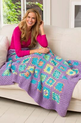 Cheerful Granny Square Throw in Red Heart Gumdrop and Soft - LW3848