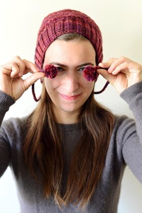 It's snowing on the other side of the window and even if I dream very intensely of becoming a bear for the whole winter, I'd still have to go out at some point. In order to cheer me up, I gathered all of my favorite elements to create Cheering Hat - a nice slipped stitch pattern, ribbing, icords, and the best of all, pom poms!