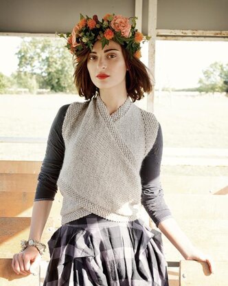 Chelsea is a cropped waistcoat which can be worn in a couple of ways that each create a cosy and stylish garment. The close fitting and textured back is complemented by the triangular folding drapes at the front. Wrapped around the waist, Chelsea is worn as a double layer ensuring complete warmth for the throat, chest and body area, whereas worn with the front panels attached behind the neck, makes a different look entirely, with the softly folding drapes creating a luxurious cowl effect.