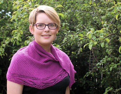 Pretty shawl worked from sides in towards the middle in two halves which are then grafted together. Body is in garter stitch with a wavy, lacy border.
