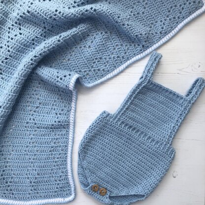 A cute little romper is a baby wardrobe must have! Adorable paired with a long-sleeved vest or layered up with woolly tights and a cosy cardigan for the colder months. A great new baby gift and a simple introduction to crocheting garments. This design is made in one piece, working in rows and in the round, so no need for sewing and joining seams. The rib effect straps fasten with buttons and can be worn straight or crossed over at the back. Make using 1 100g ball of paintbox yarns simply dk or any dk yarn that works to the same tension. Pattern written in UK terms.