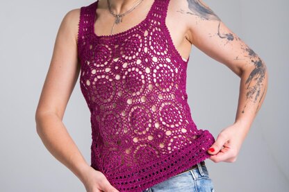 **Sizes:**S/M (6-10 US). Measurements in flat: hips 36 in / 92 cm, chest 32 in / 82 cm, length 24 in / 61 cm. Stretches out when wearing to fit chest 35.5-37.4” / 90-95 cm. L/XL (14-18 US). Measurements in flat: hips 43 in / 110 cm, chest 39.5 in / 100 cm, length 25.6 in / 65 cm. Stretches out when wearing to fit chest 40.5-45” / 103-114 cm.Yarn: Jaipur Peace Silk BC GARN, color #55; 3 for S/M (4 for L/XL) skeins (5.3 oz (150 g) / 984 yd (900 m) for size S/M and 7 oz (200 g) / 1312 yd (1200 m) for size L/XL) of 100% silk lace weight yarn.