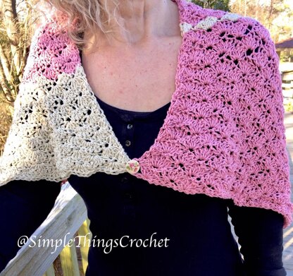 Tea, anyone? The gorgeous drape and unique asymmetrical look of this beautifully feminine shawl make it the perfect accent for a Spring tea. Plus, it works up super quickly so how about crocheting this one up as a Mother’s Day gift? Need a little extra cover with your sundress? The Cotton Bamboo yarn from Lion Brand has a silky feel to it so it feels incredible against your skin, and that makes this sweet little shawl the perfect accessory to throw on over your bare shoulders. Anyway you look at it, you need this shawl in your life this season!! The shawl measures 15 1/2" wide x 33" long. You will need 2 skeins of Lion Brand Cotton Bamboo in Cherry Blossom, and 1 skein in Magnolia