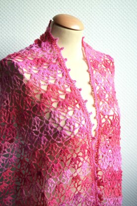 The lovely Cherry Blossoms Stole features a dainty floral lace pattern, perfect to dress up any outfit. Wear it as a shoulder wrap to show off the full stunning flower pattern, or as a simple lacy scarf. Take advantage of a beautiful fingering weight yarn with long color runs, as pictured, for a truly spectacular look.