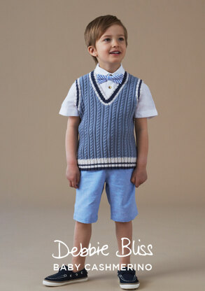 Adorable! We love the Chester vest by Debbie Bliss - such a cute little tank for kids for formal occasions! Knitted flat and seamed, Chester has some gorgeously textured cables in Debbie Bliss Baby Cashmerino - there are 50 shades to choose from, and we love the classic contrast stripes.