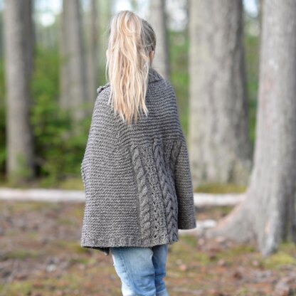 Designed with a positive ease of approx. 15-20 inches. Circumference measured with cape flat on a table along bottom after blocking. Pictured size 8/10 with a positive ease of approx. 15 inches around bottom edge.