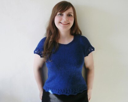 This t-shirt has a chevron and eyelet hem on the body and sleeves with a delicate lace pattern.