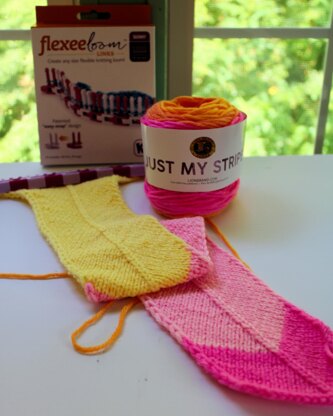 This is a great starter pattern for the new flexee loom to learn decreasing and increasing and taking out pieces and adding pieces back in. There is a video tutorial that comes with this pattern. You should only need 1 skein of Lions Brand Just My Stripes.
