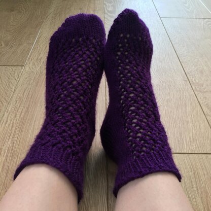 The socks are knitted from the toe up and the heel and toe are worked seamlessly using short row shaping.