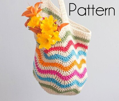 This listing is for a chevron striped, crocheted market bag, tote bag.