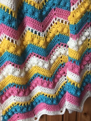 The Chevron Party Blanket is the perfect blanket pattern for a summer baby and is also a fabulous stash busting pattern. The bobbles and technique of working through the back loop of stitches creates a beautiful texture.