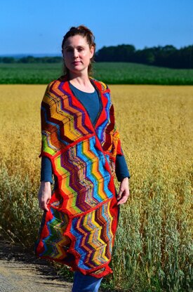 Do you have gradient kits sitting in your stash, or have you drooled over them at your local yarn shop? If so, here's the perfect pattern for using them. It's called Chevron Sandbox, because the point is to play with color. I started initially by using the Sweet Georgia Prismatic set, but then I wanted even more colors, so I added a little bit of variegated yarn from Meadowcroft Dyeworks, and then I wanted a bit more yellow, so I pulled some Dragonfly Fibers.... You get the idea. (Hmmm.... I think there's also a little Ella Rae Lace Merino in there, now that I think of it.) You have a lot of freedom with this pattern: It's fun, and you'll have "safe" creativity!