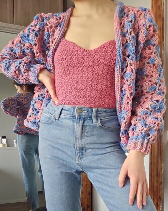 This cardigan is an amazing addition to your wardrobe! I love how quick and relaxing it was to make it. It will shine in any color combination, even variegated yarn can be used. It is great for cozy winter day, but made with cotton it can be worn all year around.