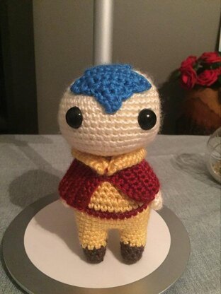 The finished Chibi Airbender amigurumi is about 18 cm (7 inches) tall and 10 cm (4 inches) wide. Size is subject to change depending on the yarn weight used.