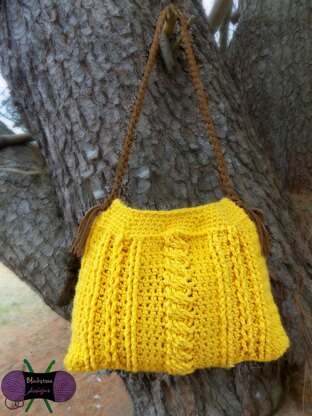 The Chic Cables Handbag features a mix of cables and a "braided" handle with fringe. It's so much fun! This bag can be made in any fiber for any season!