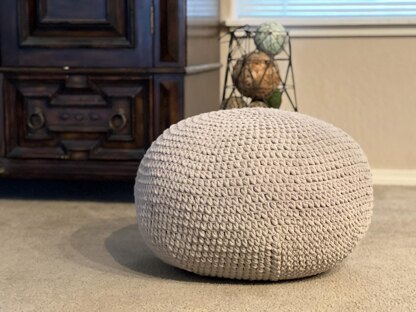 Its substantial dimensions (64" around x 13" high) make it ideal for use in living rooms, bedrooms, or cozy reading nooks. Crafted with durable yarn, this pouf maintains its shape while being soft and comfortable for everyday use.