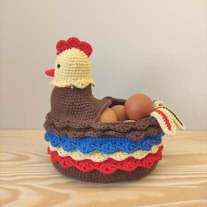 You can use any DK yarn in your preferred colours. You will need approximately 50g of yarn in the main colour and 20-30g in 3 other accent colours. Or you can make your hen egg basket monochrome just with two colours. Use your imagination and don't forget to post your pictures and tag us on your social media ;).