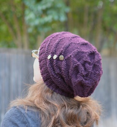 Twists in the ribbing and an elegant button detail make this a perfect girly hat, but do straight ribbing and leave off the buttons and it’s something any guy would wear.