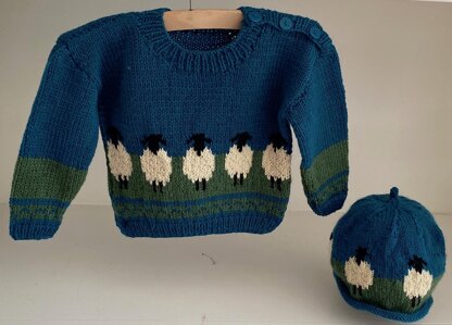 There are 2 Patterns, one is for the hat and the other is for the jumper either 1 or both can be knitted. There are so many needle sizes as the hat is knitted in different needles to the jumper. The smallest size jumper is 2 balls of the main colour and and the hat has an additional ball. Part balls of yarn are used for the sheep. Any DK yarn with the same tension can be substituted for the brand used. The jumper is knitted on straight needles and the hat is knitted in the round.