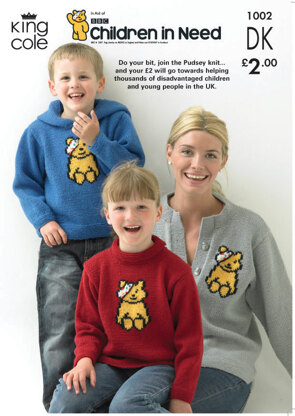 Children in Need Pudsey Bear Sweaters and Cardigan Knitted in King Cole Merino Blend DK - 1002