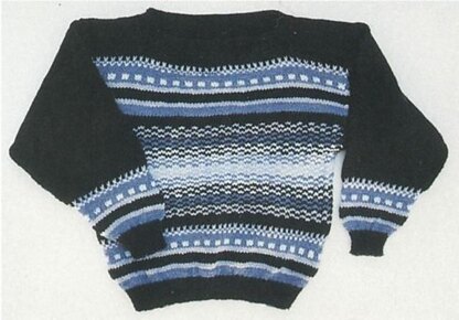 In sizes 2 to 14 years. A good way to use up scrap yarns , or shades of color that do not match. They will be hidden in this pattern. Easy to follow instructions. Uses thick sport weight yarn, knitting needles, US# 7 and # 9. Use needle sizes #6,and #8 for small sizes 2 to 3 yrs.