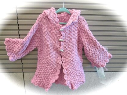 Textured, toggled, and hooded....a simple texture stitch on an easy to knit garment for a toddler.... edge it in crocheted scallops for a little girl or in simple ribbing for a little boy...