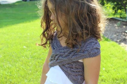 This great accessory can dress up any outfit. It can be worn all year long and looks great over anything. Perfect for ages 4-8. The sample was knit with Blue Heron's Rayon Metallic yarn on a #8 needle but any worsted weight yarn will work.