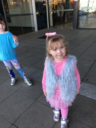 I designed this fur vest for one of my Granddaughters, as I had an excess amount of Fur yarn.