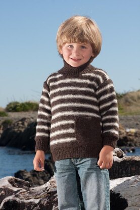 Reverse stocking stitch stripe sweater with a big pocket to store treasures in.