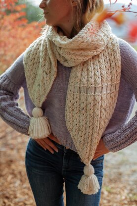 This is an easy scarf to knit. It features constellate/dip stitch/heart cable stitch and drop stitches.