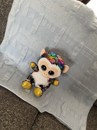 The blanket measures approximately - 33 by 33 inches. What's needed:- 4mm circular knitting needles Tapestry Needle