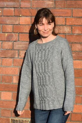 Choucas is worked in the round and bottom up to the armholes, where work is split and worked flat. Shoulders are rejoined using a three needles bind off. The sleeves are picked up at the armholes and then worked top down. The cable pattern is charted and fully written.