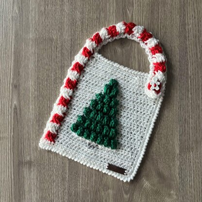 CHRISSY CANDY CANE CHRISTMAS TREE CROCHET BABY BIB PATTERN PDF - Drool Bib, Dribble Bib, Food Bib, Christmas Bib Pattern - A too cute Christmas Bib. Unisex | Gender Neutral - Baby Boy or Baby Girl. Great baby Christmas gift. Perfect for keeping clothes underneath dry when teething or a trendy baby clothing accessory for Christmas Day!