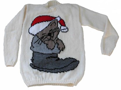 Christmas Cat In Boot Jumper / Sweater Knitting Pattern