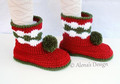 Contrasting color patterns together with Pom-Poms make this booties look cute and adorable while keeping your child’s feet nice and toasty. Also, the pattern is double soled for comfort, and has complete toe reinforcement to help them retain their charming shape and durability. One of my customers said: Not just for Christmas. It would look lovely in other shades for the rest of the year. Includes PATTERN for the Children's Pom-Pom Boots in five sizes: